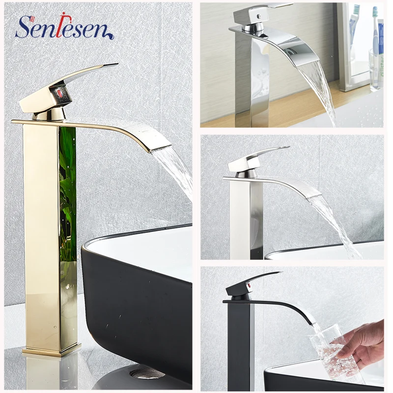Luxury Countertop Bathroom Basin Faucet Waterfall Spout Vanity