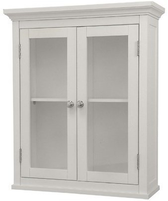 Classique Elegant Wood Wall Cabinet White Two Glass Doors