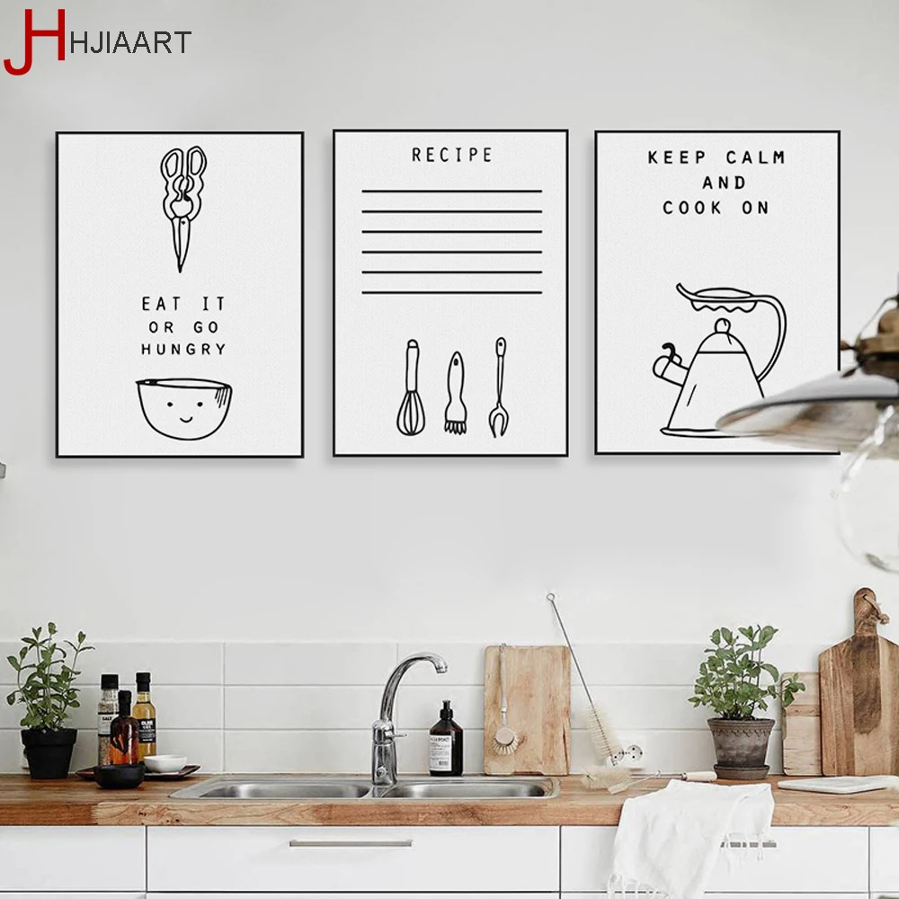 Black White Kawaii Cooking Quotes Poster Nordic Kitchen Wall Art