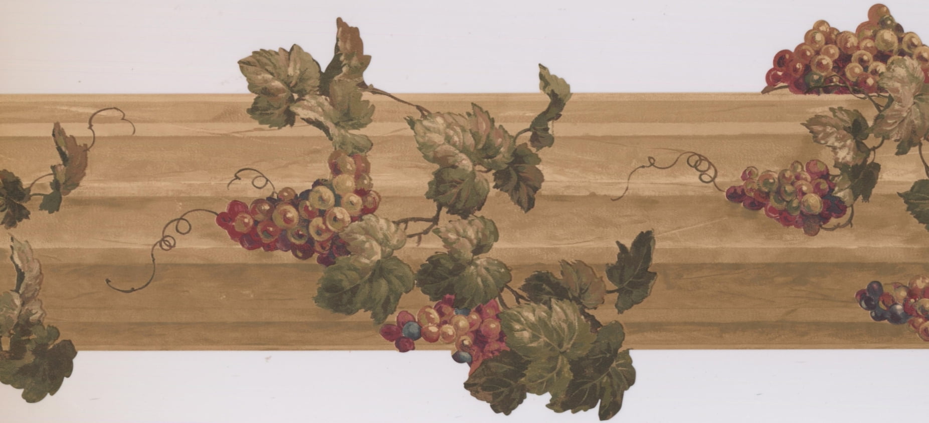 Red Beige Grapes On Vine On Wooden Fence Kitchen Wallpaper Border