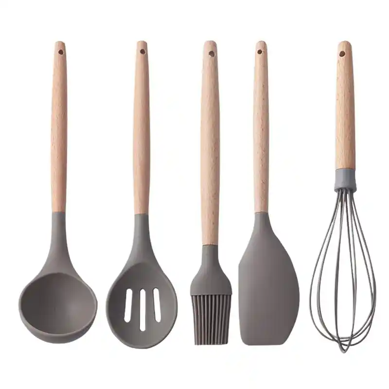 5pcs Silicone Kitchenware Set Wooden Handle Kitchen Wares Set Non