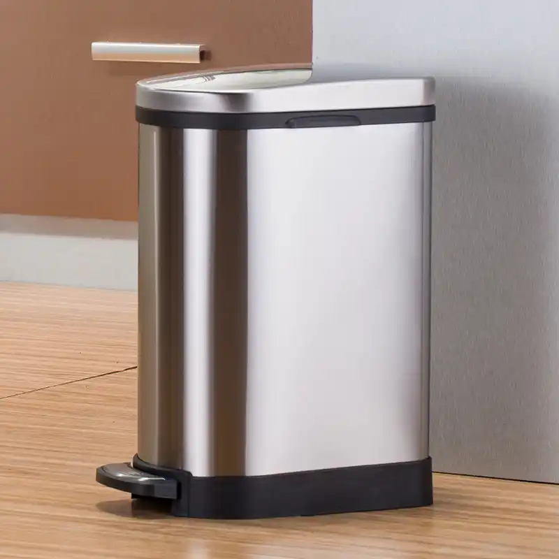 10l Stainless Steel Foot Down Trash Can Household Kitchen Bathroom