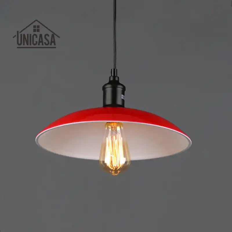 Modern Pendant Lights Red Shade Fixture Wrought Iron Lighting