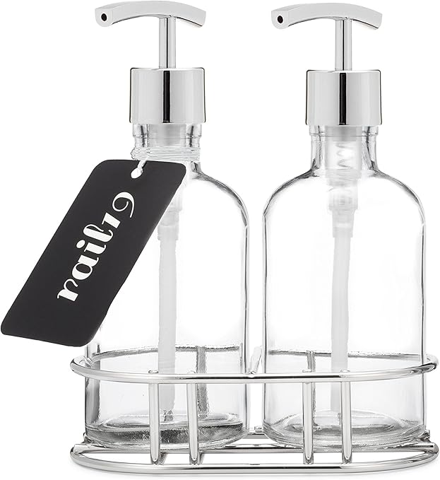 Amazon Com Rail19 Glass Soap Dispenser Set With Metal Lotion And