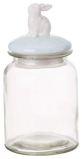Glass Storage Jar With Bunny Rabbit Lidded Top Farmhouse