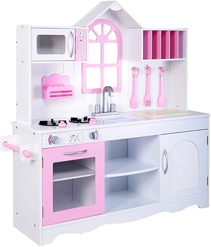 Amazon Com Kids Wood Kitchen Toy Cooking Pretend Play Set