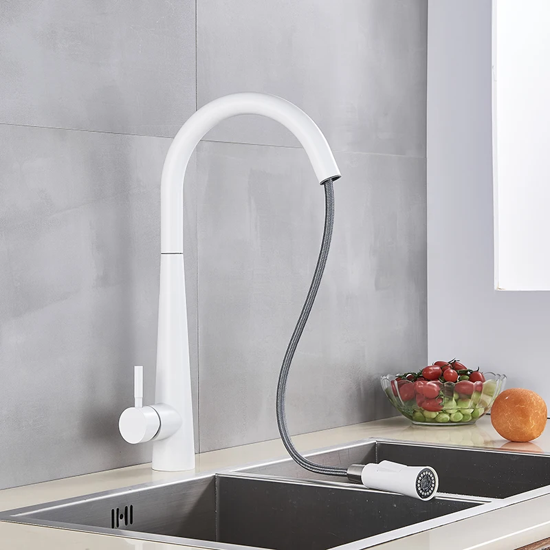Pull Down White Kitchen Faucet
