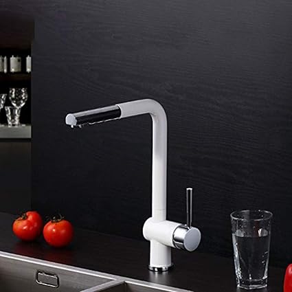 47 out of 5 stars 4. Add to cart. These kitchen faucets have a spray head that you pull downward from the end of the spout. Spring white chrome kitchen faucet with pull down dual function sprayer high arc style single lever handle brass material kitchen sink faucet wmm569067jw by koozzo.
