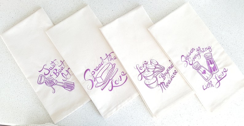 Purple Kitchen Towels Embroidered Kitchen Tea Towel Set Set Etsy