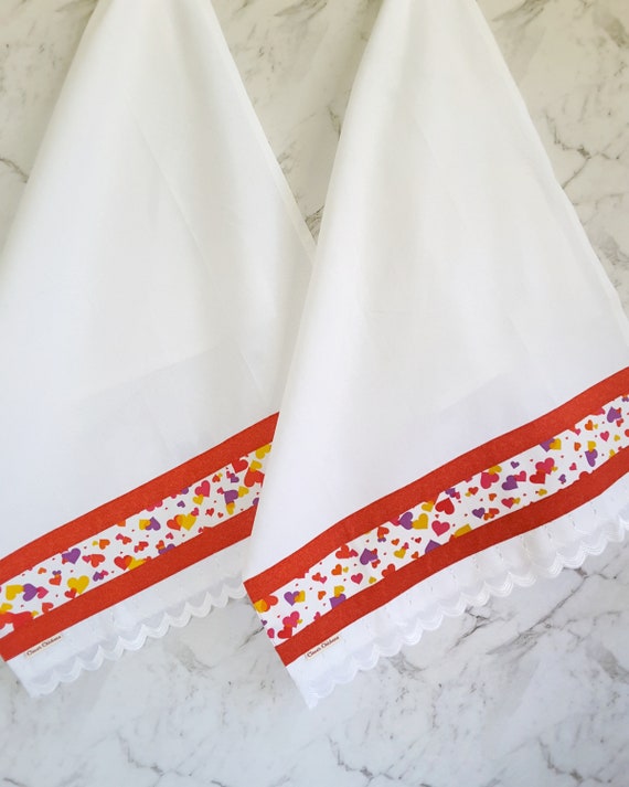 Love Heart Tea Towel White Red Vintage Kitchen Decor Etsy