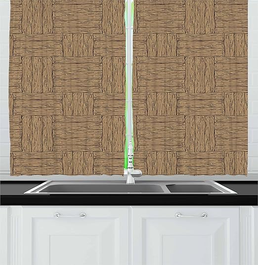 Amazon Com Ambesonne Rustic Kitchen Curtains Wooden Texture
