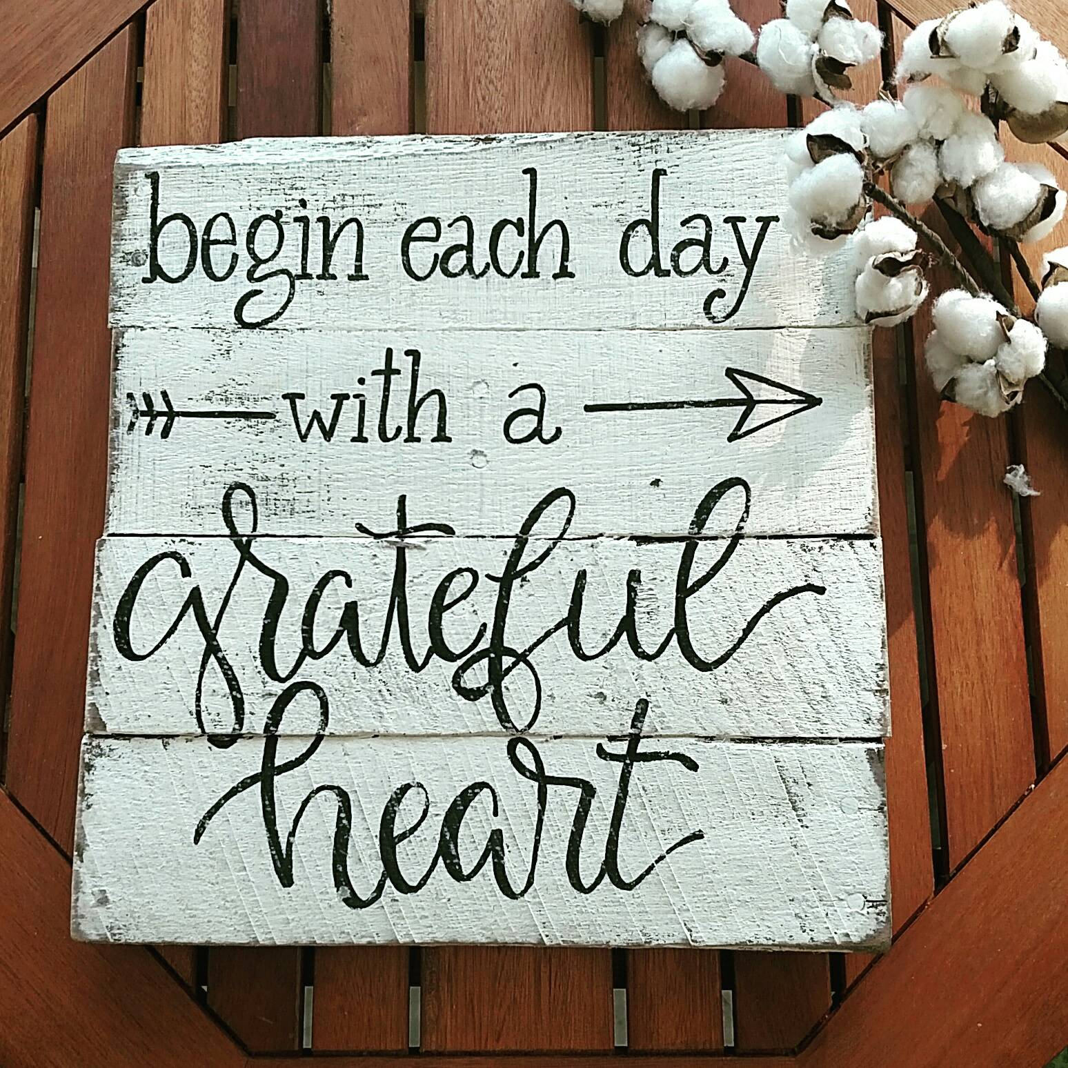 Begin Each Day With A Grateful Heart Wood Signs Grateful Etsy