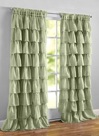 Amazon Com Carol Wright Gifts Ruffled Layered Curtains Sage