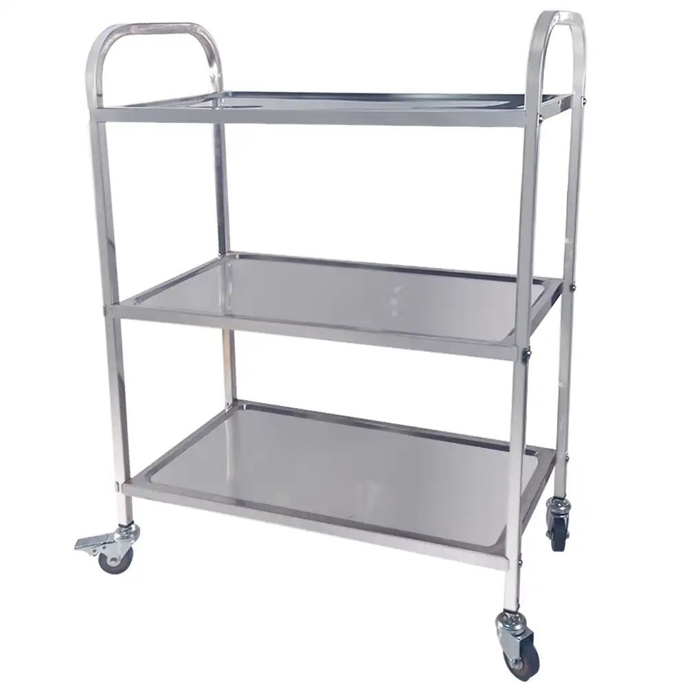 Stainless Steel 3 Tier Trolley Cart With Pvc Rolling Wheels Large
