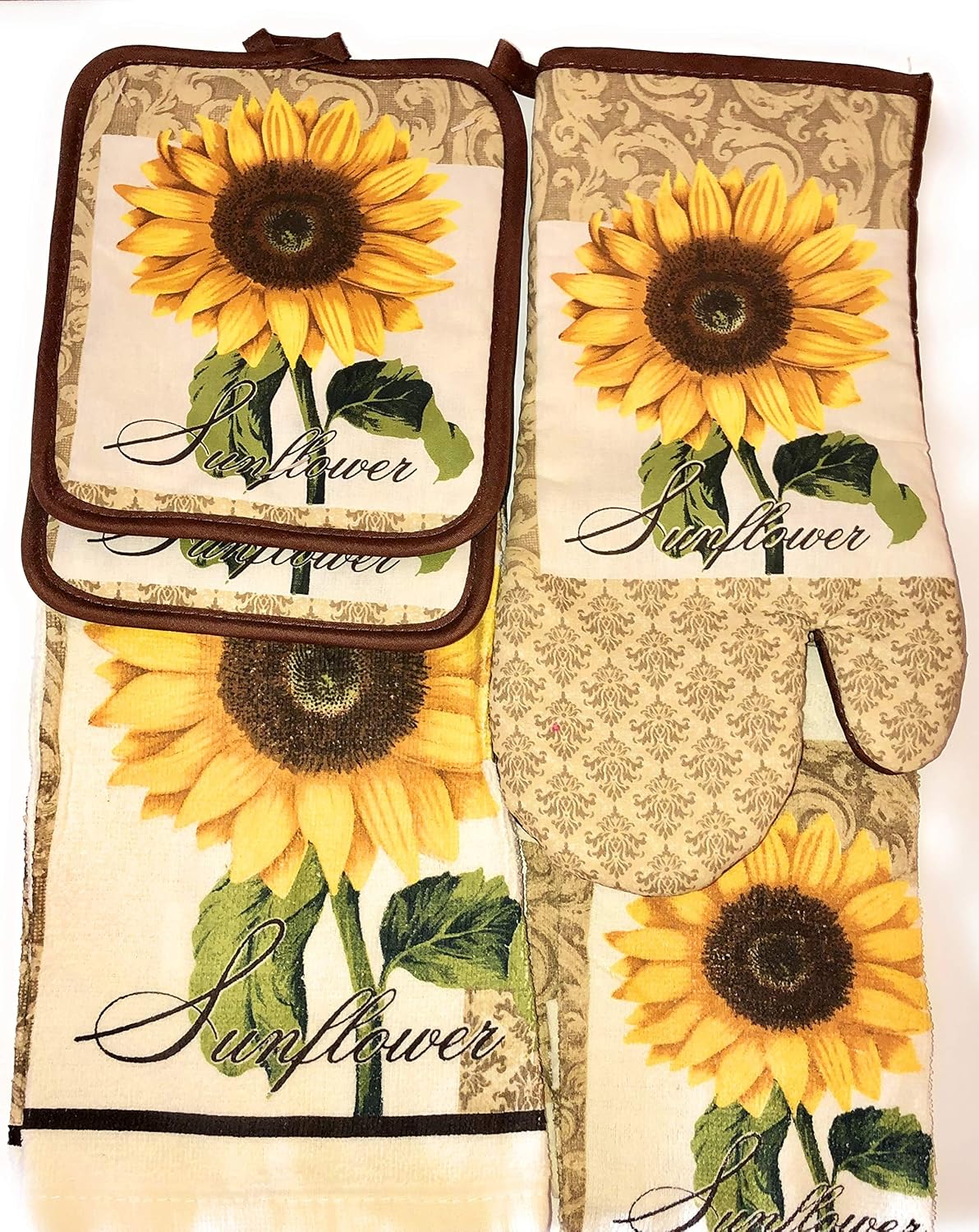 New Look Sunflower Kitchen Towel Set 7 Pc 1 Oven Mitt 2 Dish
