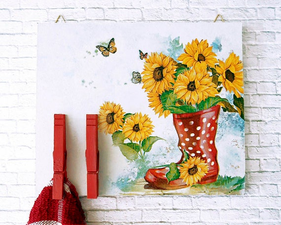 Sunflower Decor Kitchen Towel Holder Recipe Holder Wall Etsy