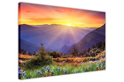 Sunrise Mountain View Landscape Framed Canvas Wall Art Prints