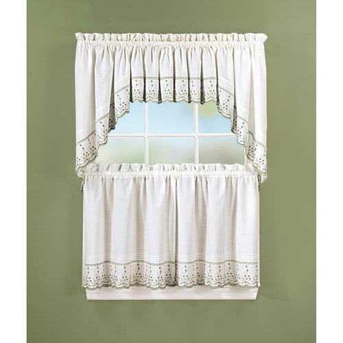 Sterling Lace Kitchen Curtains With Tier Swags Valances