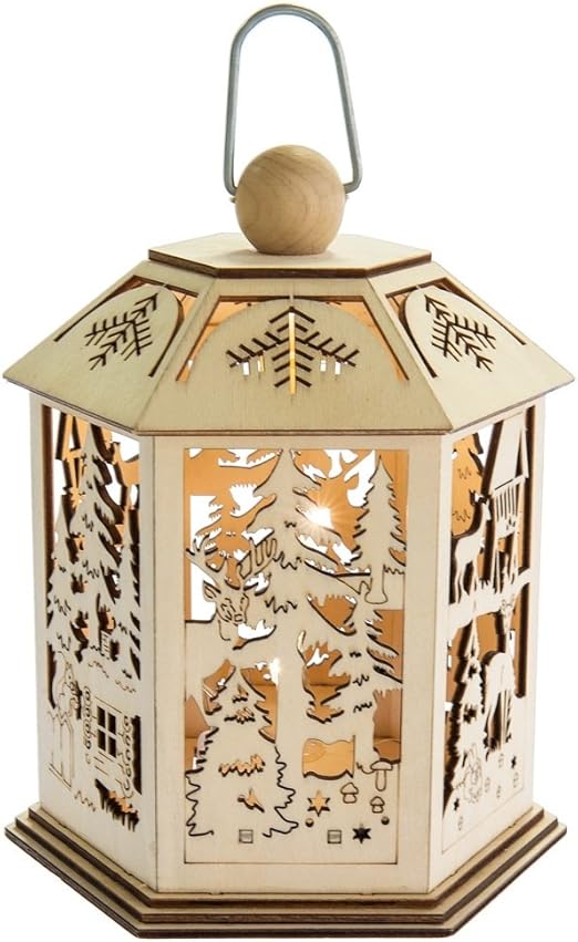 Amazon Com Midwest Cbk Led Holiday Winter Scene Lantern Wood