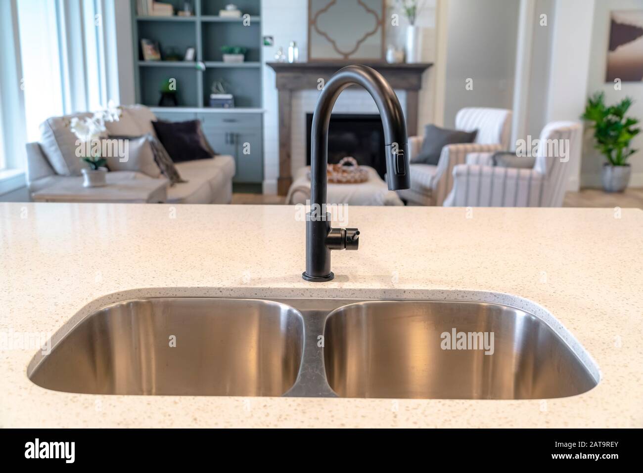 Double Basin Undermount Sink At The Kitchen Island Of Home With
