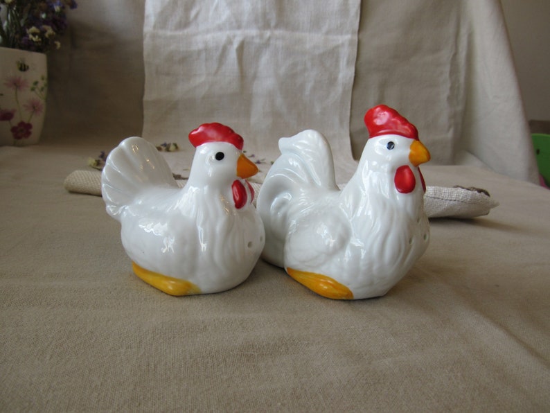 Hen And Rooster Salt Pepper Shaker A Pair Of Chickens White