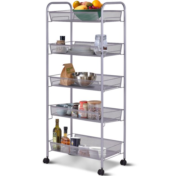 Augienb 4 5 Tier Metal Wire Rolling Cart Kitchen Rolling Storage