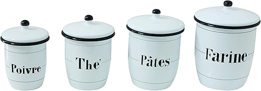 Amazon Com Creative Co Op Enameled White Canisters With French