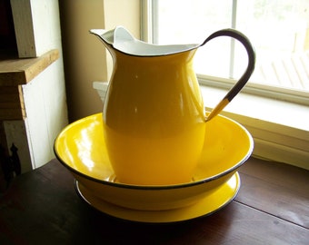 Vintage Enamelware Yellow Pot Vintage Kitchen Decor Cinsa Peacock